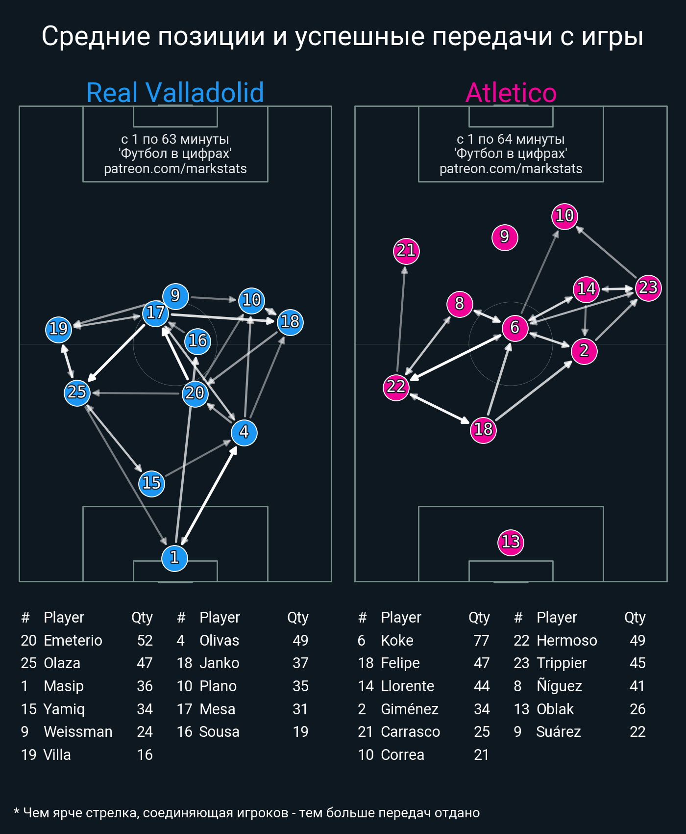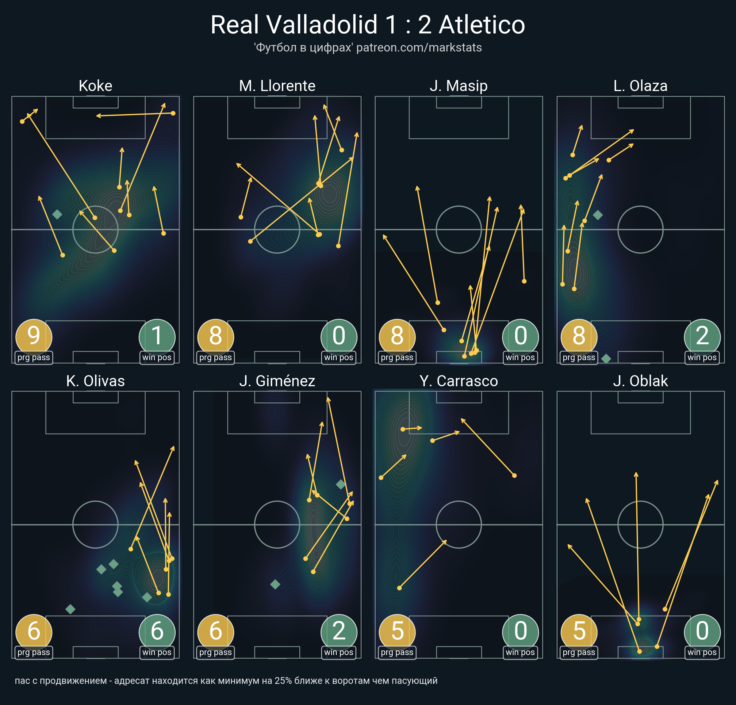 ▪ 20 успешных передач из 30 попыток (2 под удар, 5 с продвижением, 12 на трети соперника)