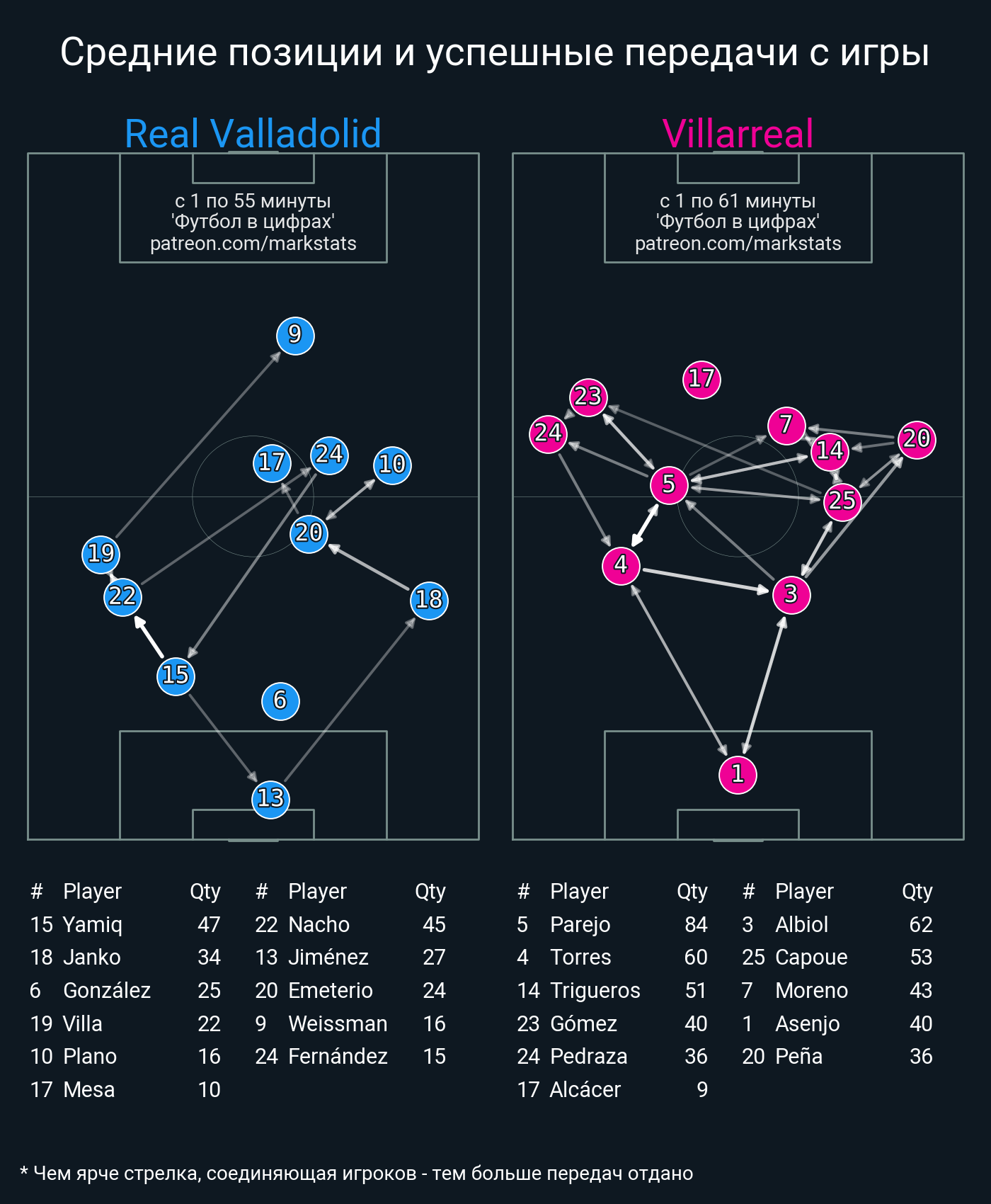 ▪ 53 успешных передач из 62 попыток (5 с продвижением, 1 на трети соперника)