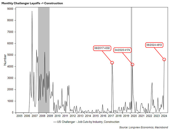 Расхождение 12-месячной форвардной прибыли S&P и оперативных экономических индикаторовНакопление запасов нераспроданных домовРекордное количество увольнений в строительном секторе