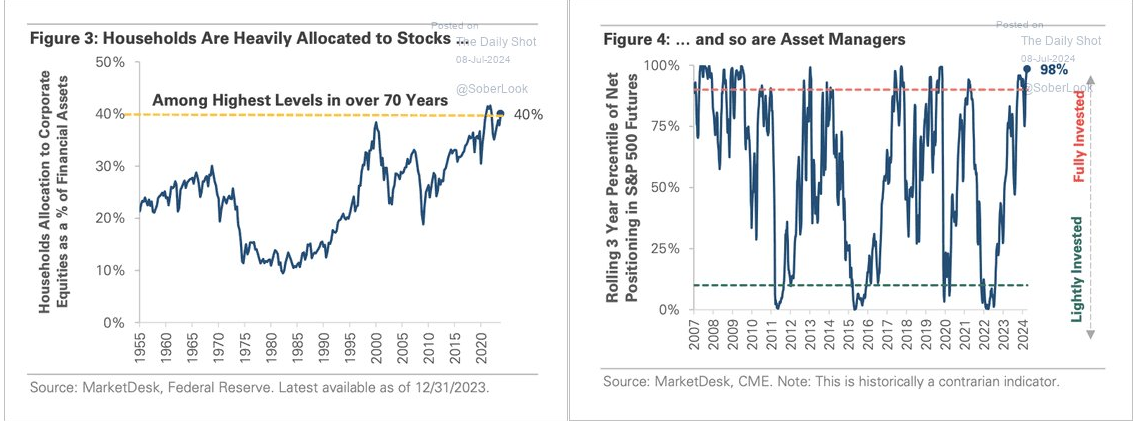 Аллокация американских домохозяйств и управляющих активами в акции