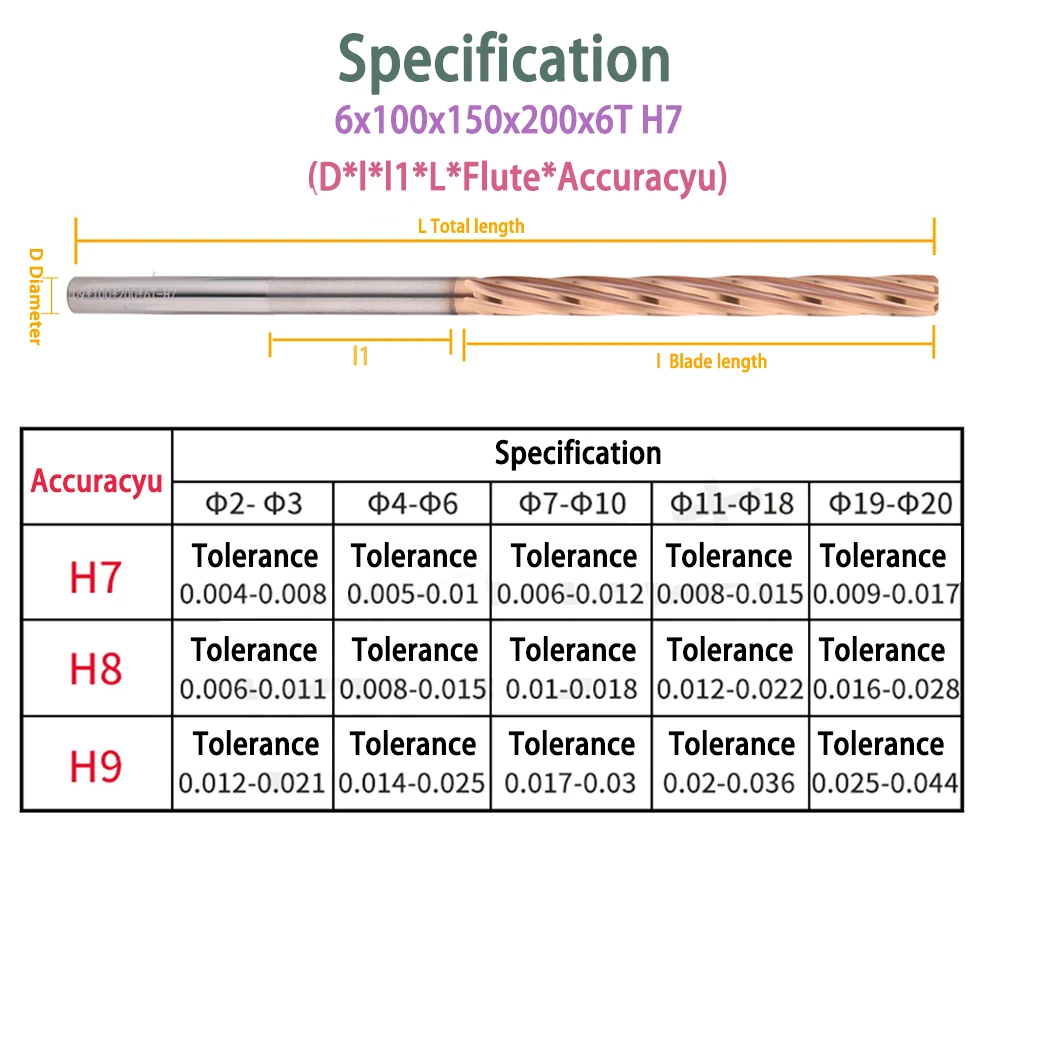 «Reamer HRC60 H7 Carbide Spiral Bronze Coated Extended Machine Reamer For CNC Helix Straight Shank Machining Reamers» по лучшей цене на рынке! Всего за 39$ (3705рублей)