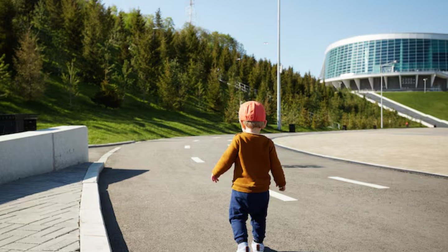 Ребенок вдоль дороги