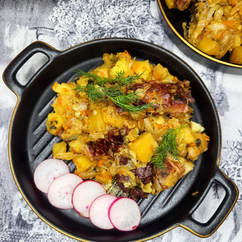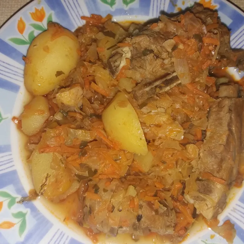 Ребра с капустой и картошкой