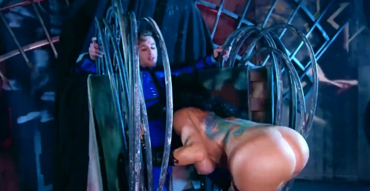 Huge monster tits girl fucks boy in her office.