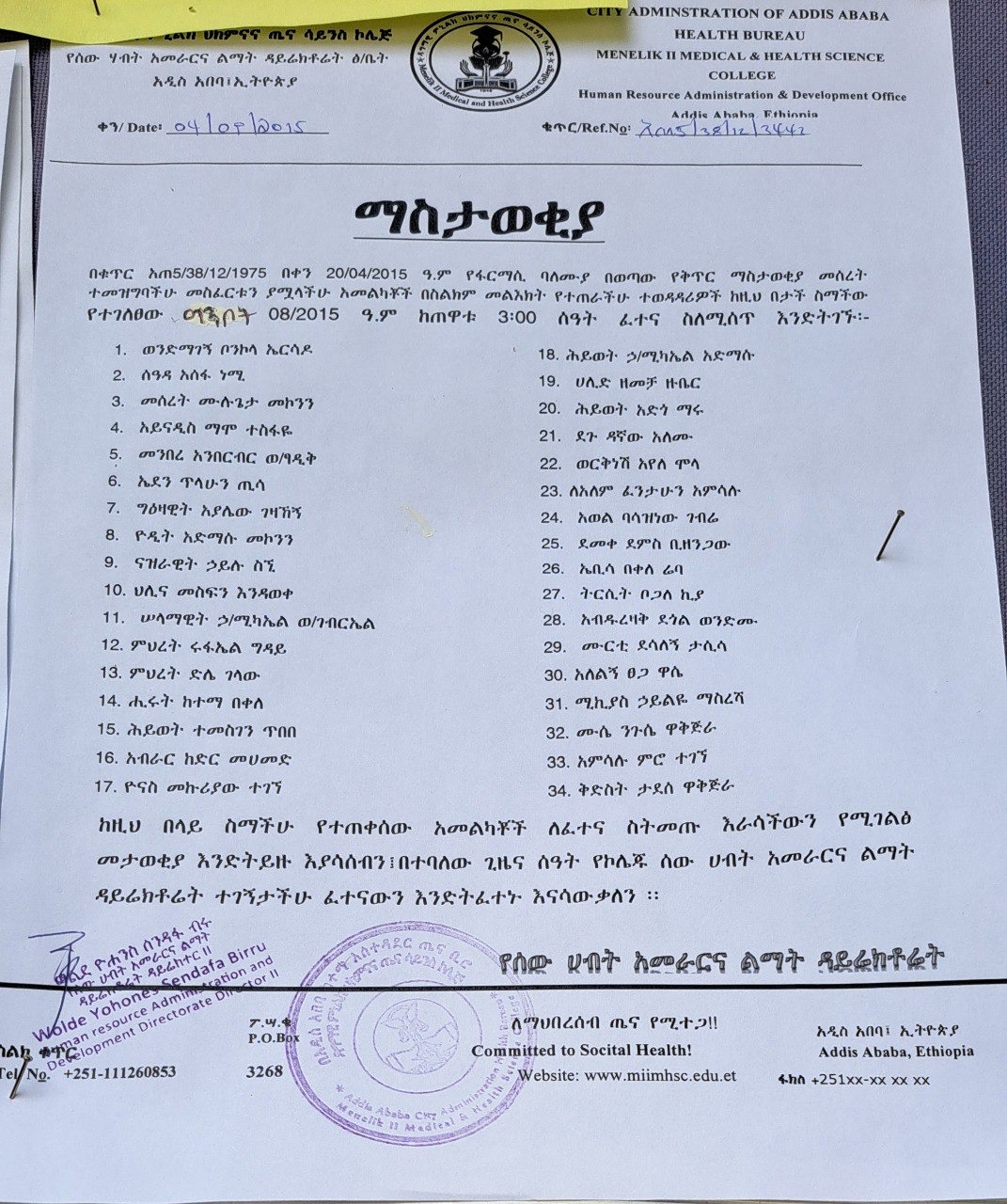 Menilik II Medical and Health Science College Call for Exam