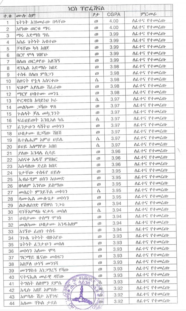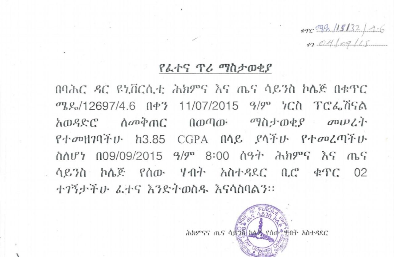 Bahir Dar University Call for Exam