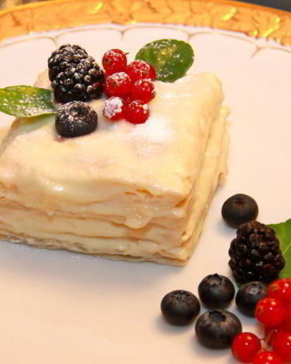 Десерты из покупного слоеного теста или теста собственного приготовления . Рецепты классического штруделя, торта Наполеон, конвертиков с творогом и слоеного печенья с кремом .