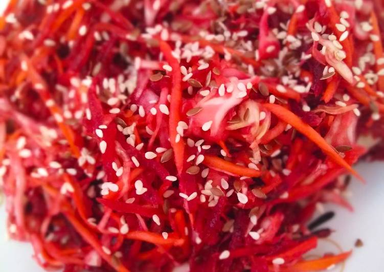 Замечательный салат! Муж страдает лишним весом (сердечник!), поэтому такой салат постоянно готовлю! К счастью он любит очень свеклу! И да, добавляю любую зелень, яблоко, варианты могут быть любые! Но все в сыром виде! Заправляю кунжутным маслом, очень своеобразный и приятный вкус, и чуть-чуть соевого соуса! Попробуйте и ешьте на здоровье!!