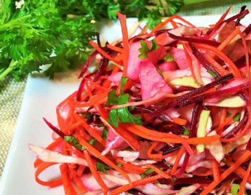 Салат из свежей свеклы, моркови и капусты