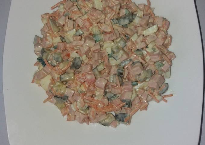 1 куриная грудка, 1 большая морковь, 50 гр . сыра, 3-4 зубчика чеснока, майонез .