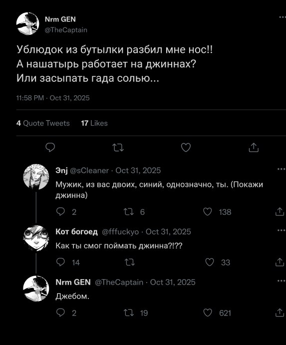 Неудачник, выловивший пробку переносицей, увидел в искривлённой вспышке боли стройную фигуру — силуэт в отражении бутылки энергетика.