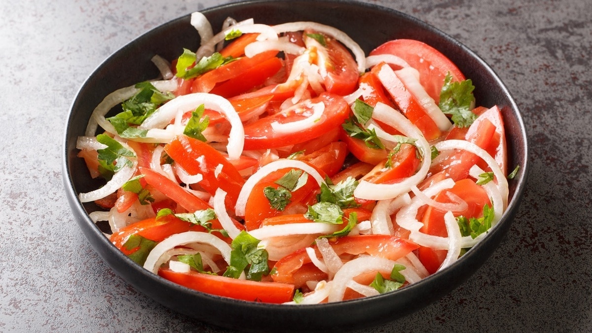 Рецепт резанных помидор с луком
