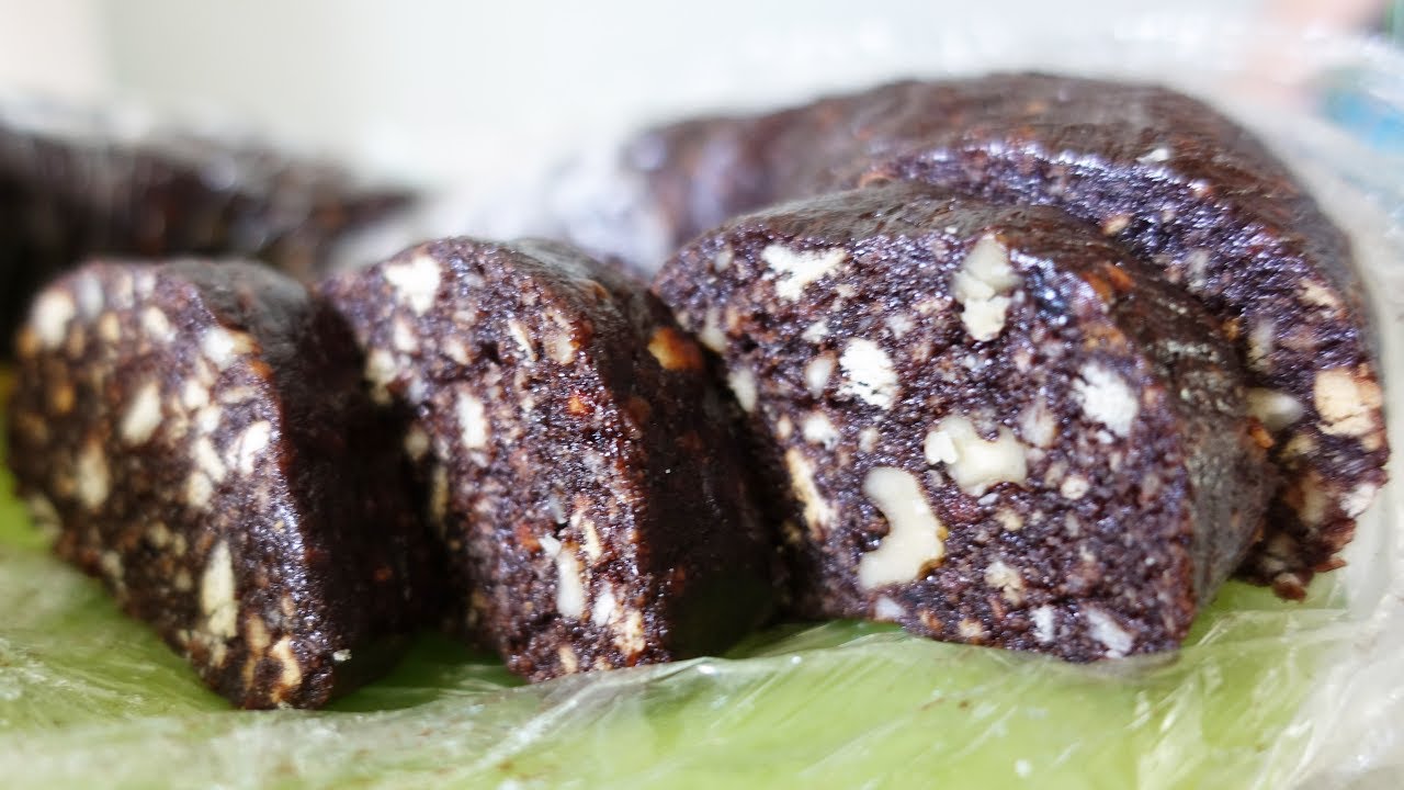 Рецепт шоколадной колбасы с орехами