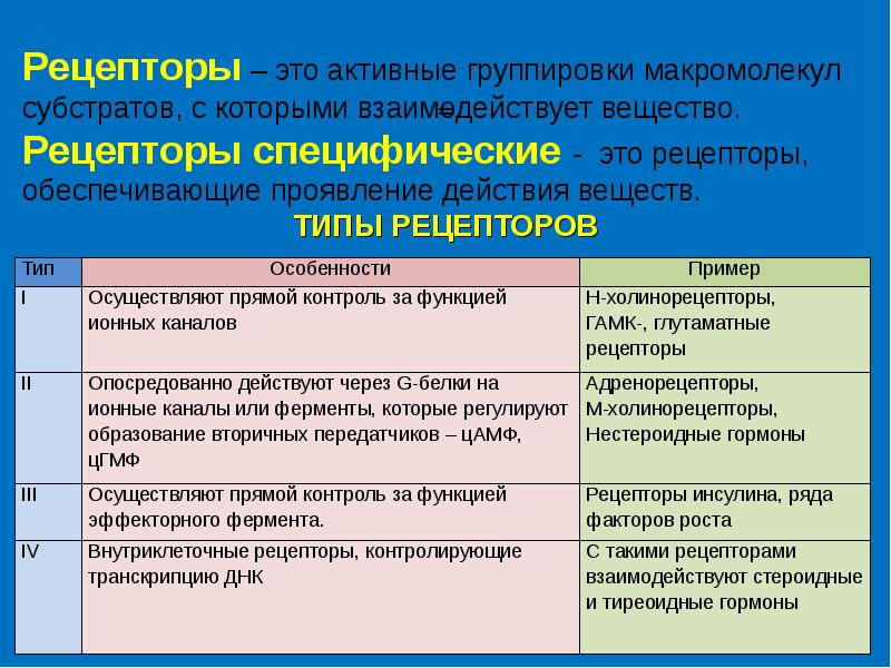 Рецепторы виды свойства