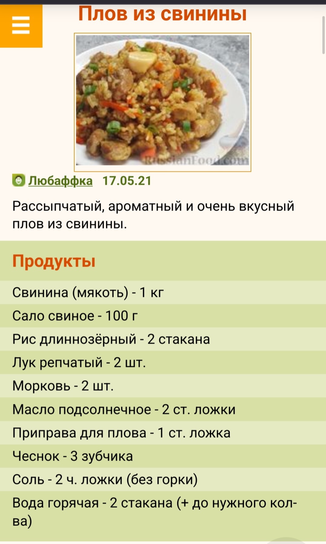 Рецепты к плову