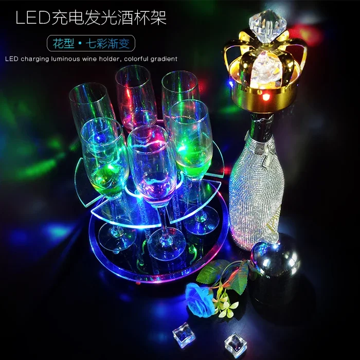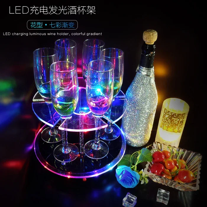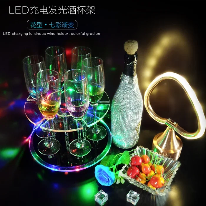 Rechargeable Battery LED Luminous Champagne Glasses Glorifier Cocktail Cup holder Stand VIP Service Shot Glass Rack Party Decor - Купить с бесплатной доставкой