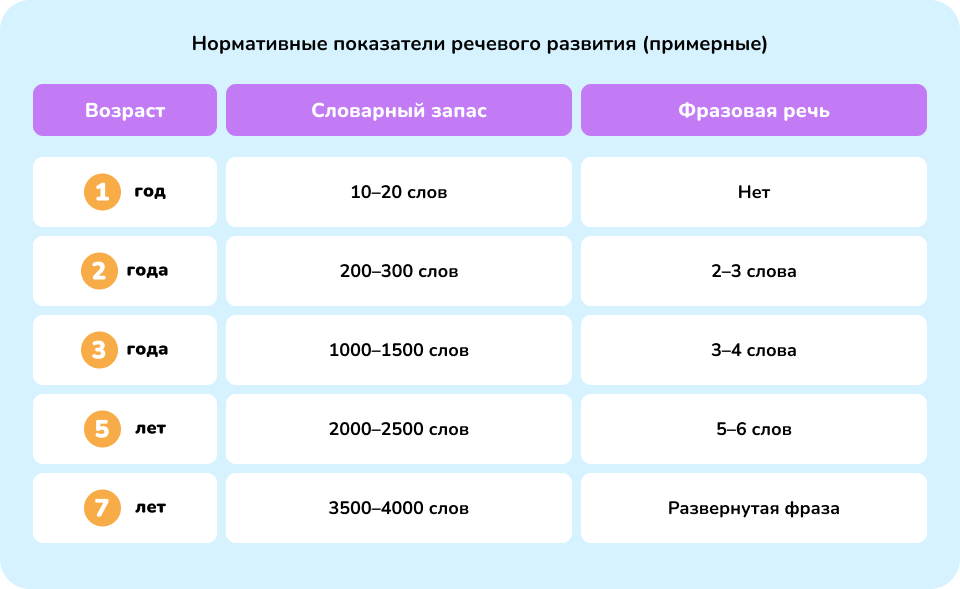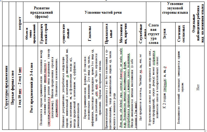 Речевое развитие детей таблица