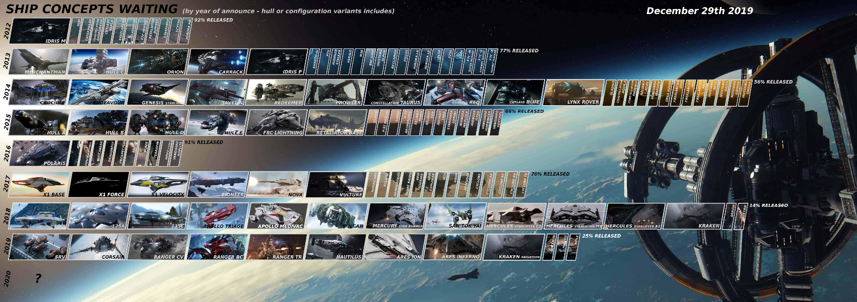 También podemos ver en la siguiente imagen cuánto tiempo llevamos esperando las naves conceptuales actuales: