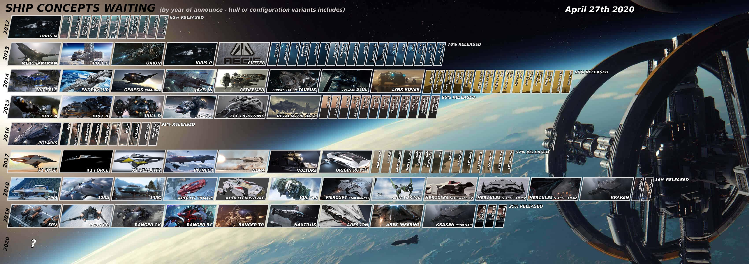 Con el lanzamiento de la Prowler (nave mostrada en 2014) en el parche 3.9, se tacha una nave más de la lista de naves pendientes por salir.