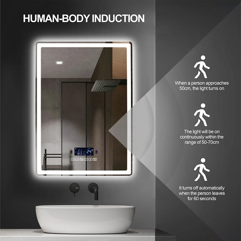 gQfBdfneaHere you can buy Rectangle Bluetooth Smart Bathroom Makeup Mirror Items LED Light Human Body Induction Defogging Time Display Hanging Mirrors with free delivery to your post office.