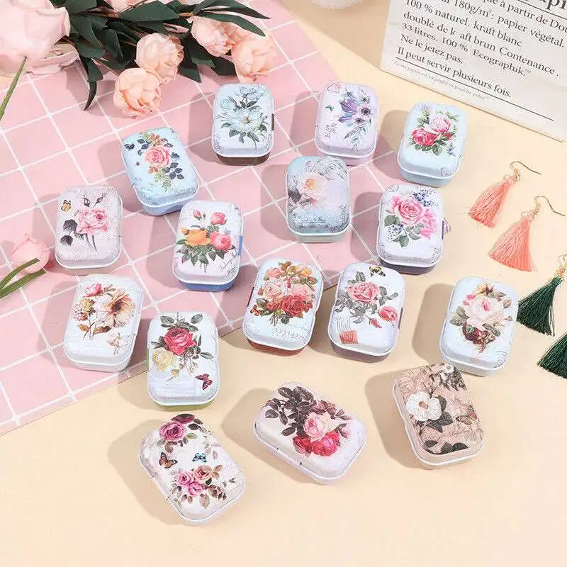 "Rectangul Tin Trinket Storage Case Mini Flower Jewelry Coin Box Tinplate" * Buy Now Just For 1$