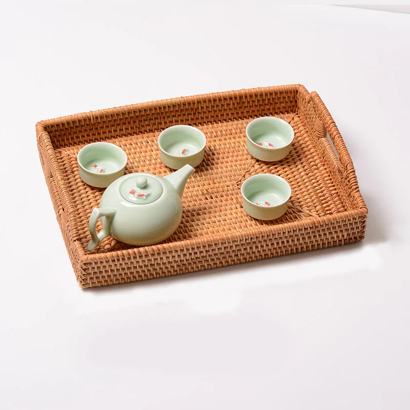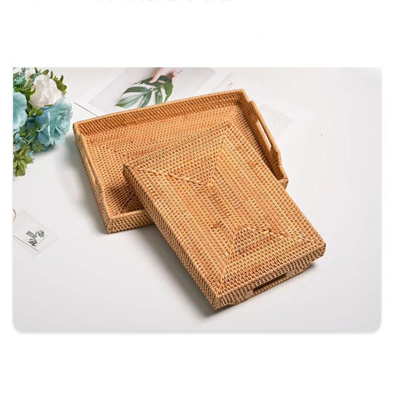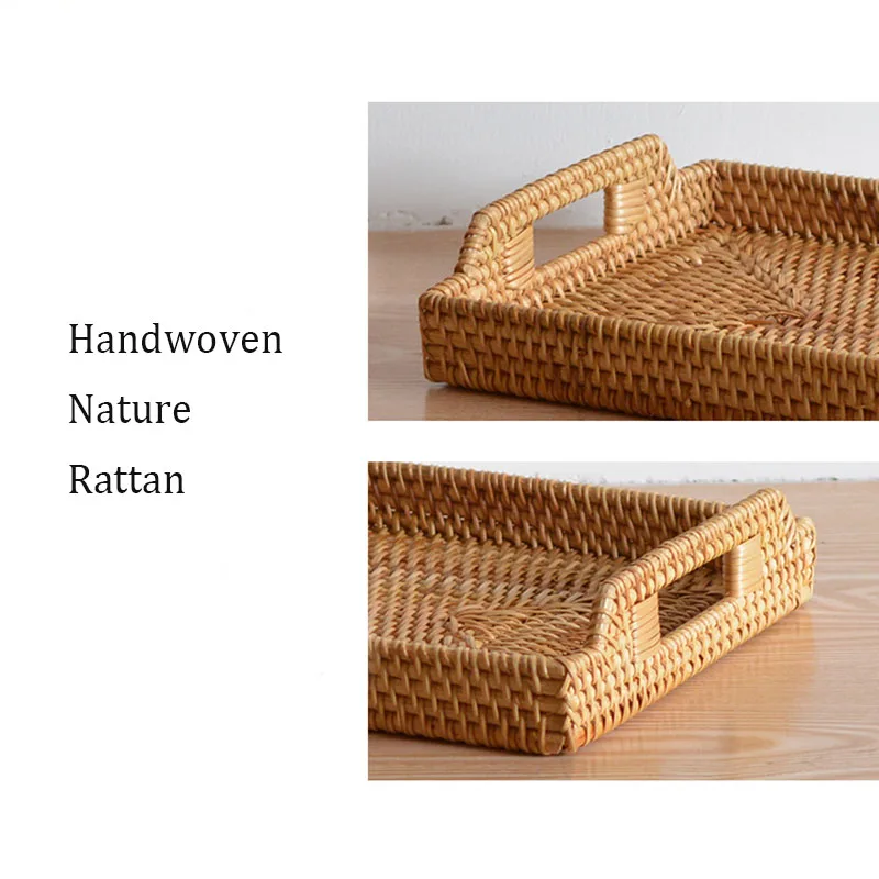 Rectangular Rattan Serving Tray Wicker Woven Basket Bathroom Tray Woven Bread Baskets With Handles Storage Basket For Parties - Купить с бесплатной доставкой