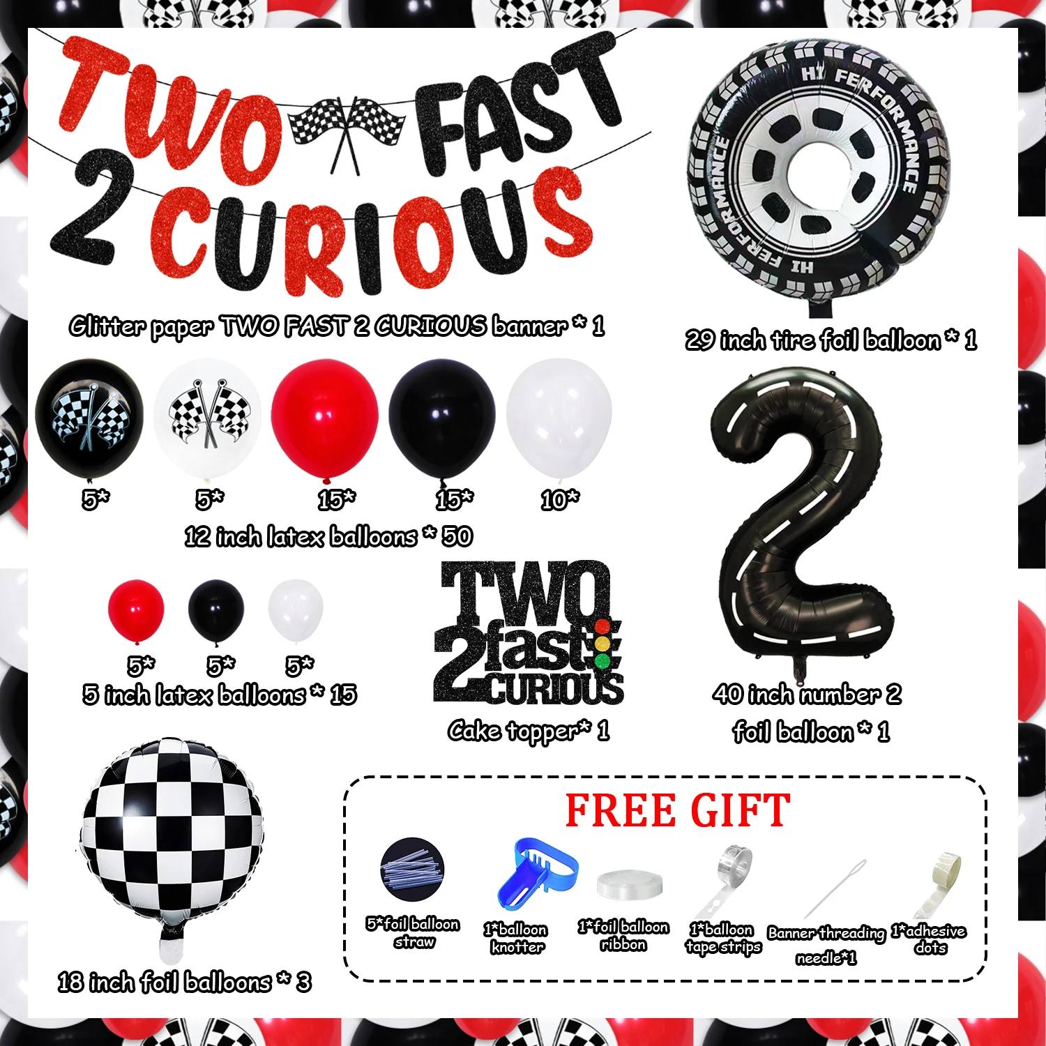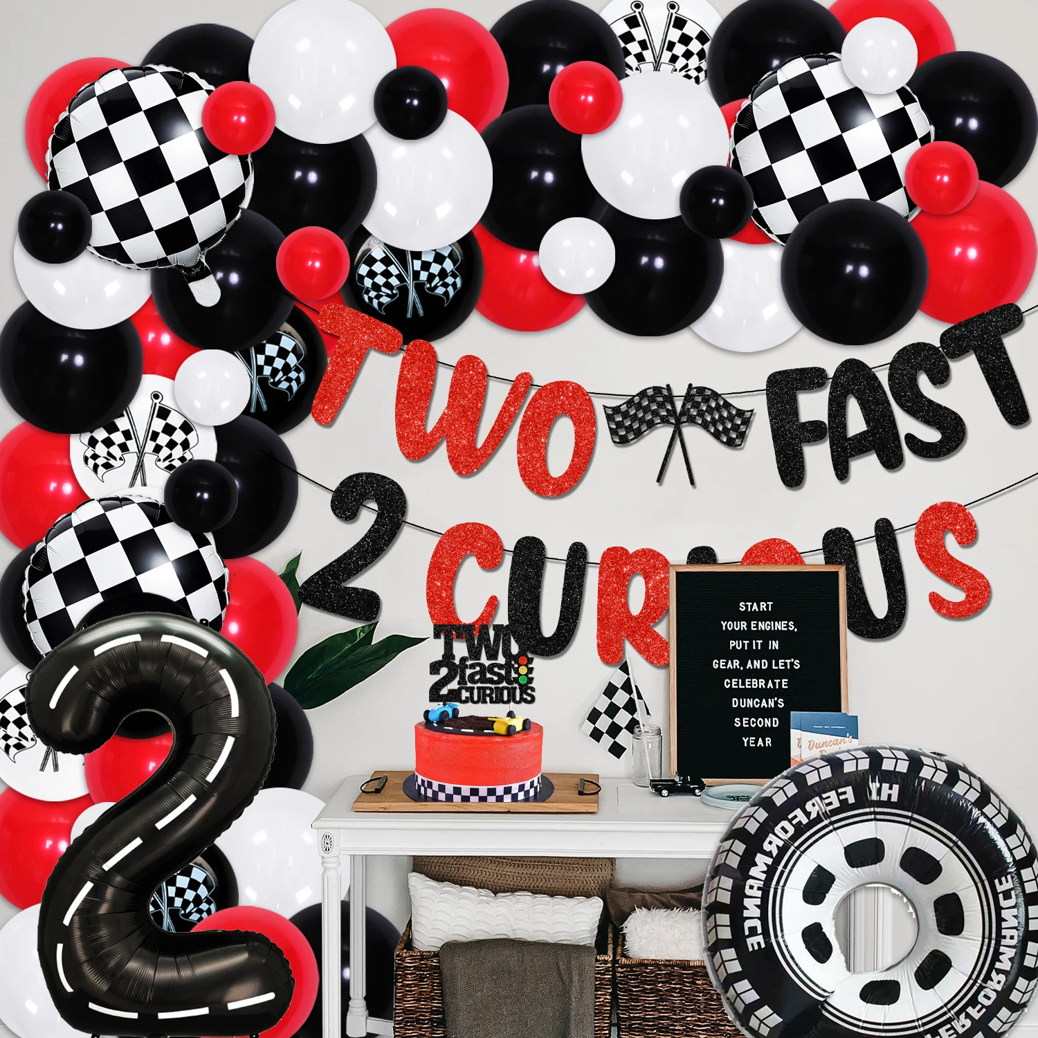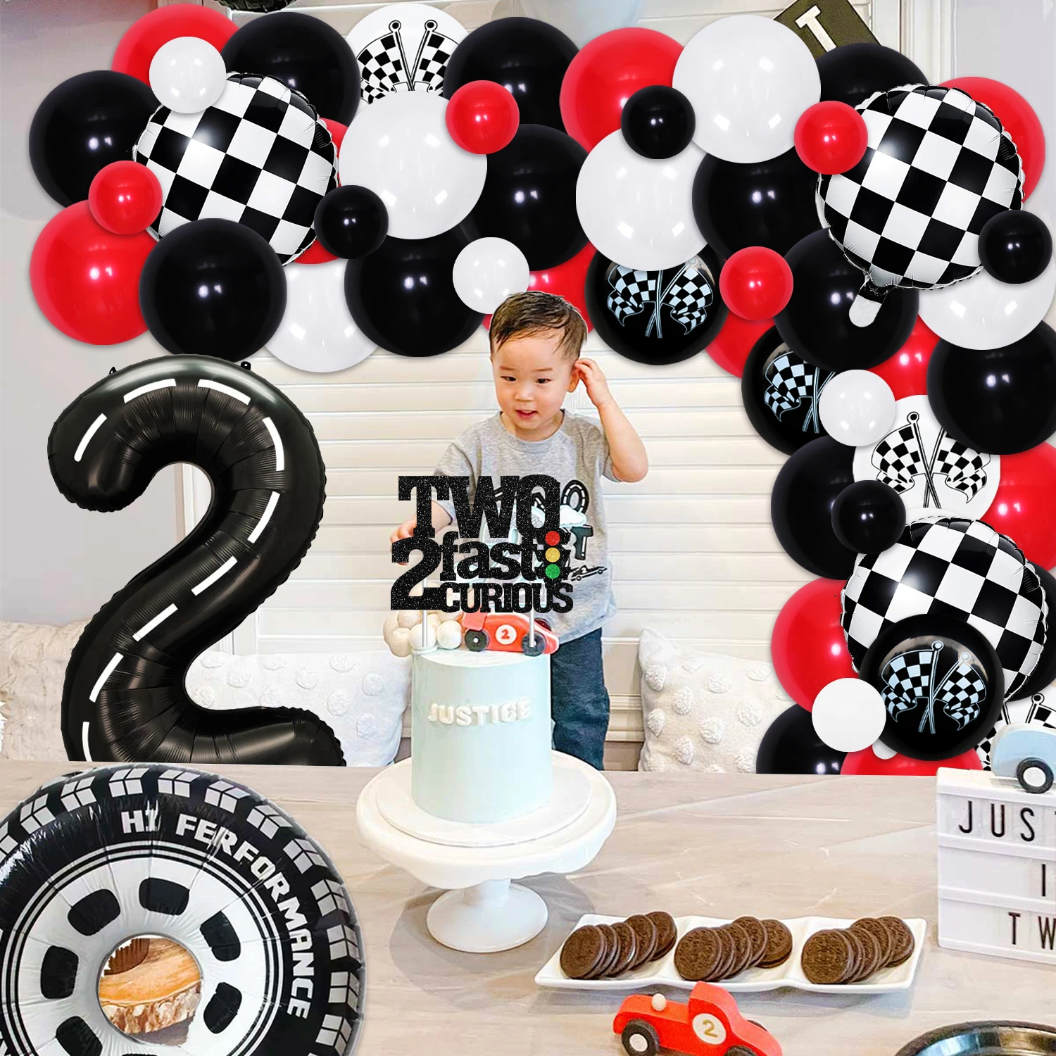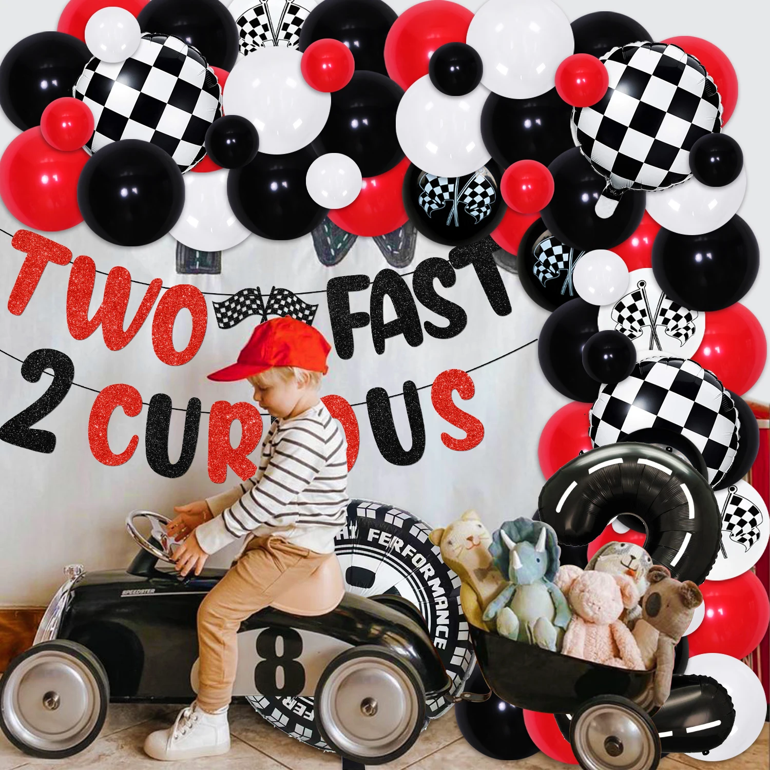 HzeWjMnTHere you can buy Red Black Racing Car 2nd Birthday Decorations for Boys TWO FAST 2 CURIOUS Banner Cake Topper Racing Theme Balloon Garland Kit with free delivery to your post office.