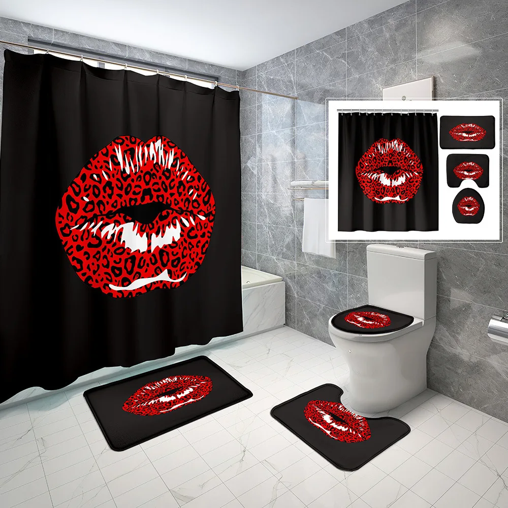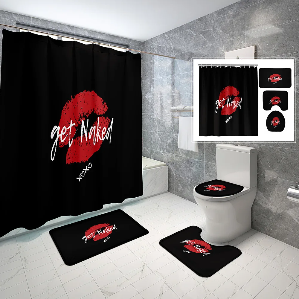 «Red Funny Kiss Shower Curtain Set Non-Slip Rug Toilet Lid Cover Bath Mat Bathroom Bath Curtains Waterproof Cloth with Hook Decor» по лучшей цене на рынке! Всего за 27$ (2565рублей)
