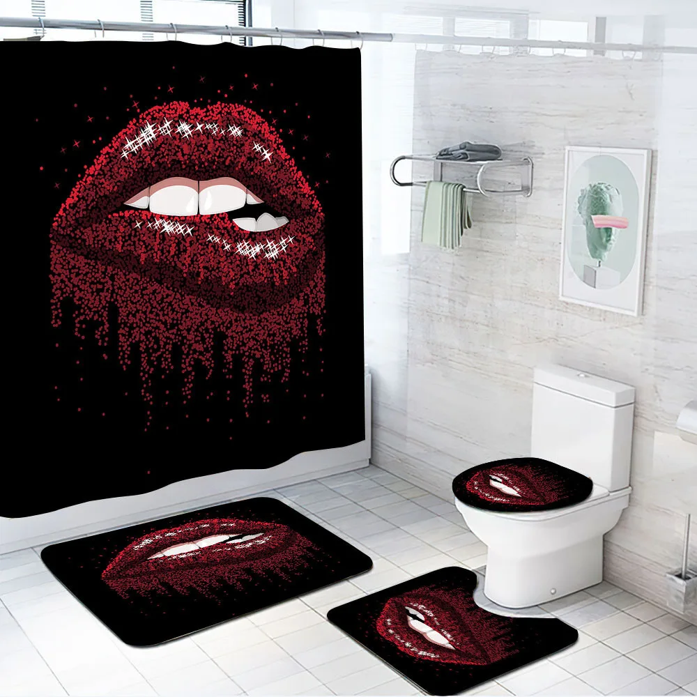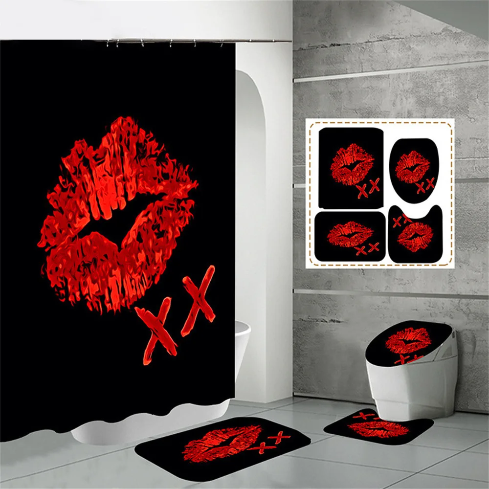 kUFRjKyMHpДолго искали Red Funny Kiss Shower Curtain Set Non-Slip Rug Toilet Lid Cover Bath Mat Bathroom Bath Curtains Waterproof Cloth with Hook Decor, но не могли найти? Предоставляем вашему вниманию Red Funny Kiss Shower Curtain Set Non-Slip Rug Toilet Lid Cover Bath Mat Bathroom Bath Curtains Waterproof Cloth with Hook Decor по лучшей цене на рынке!
