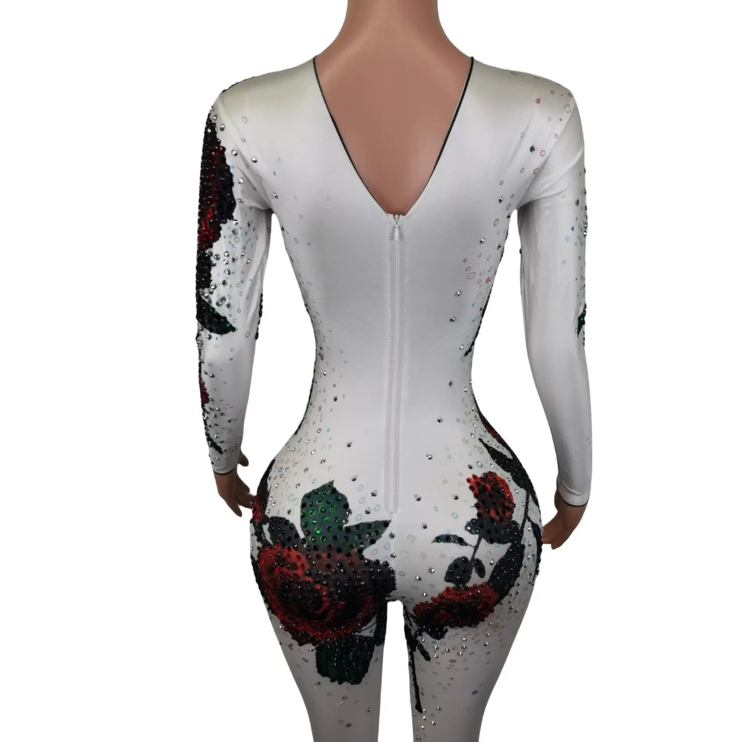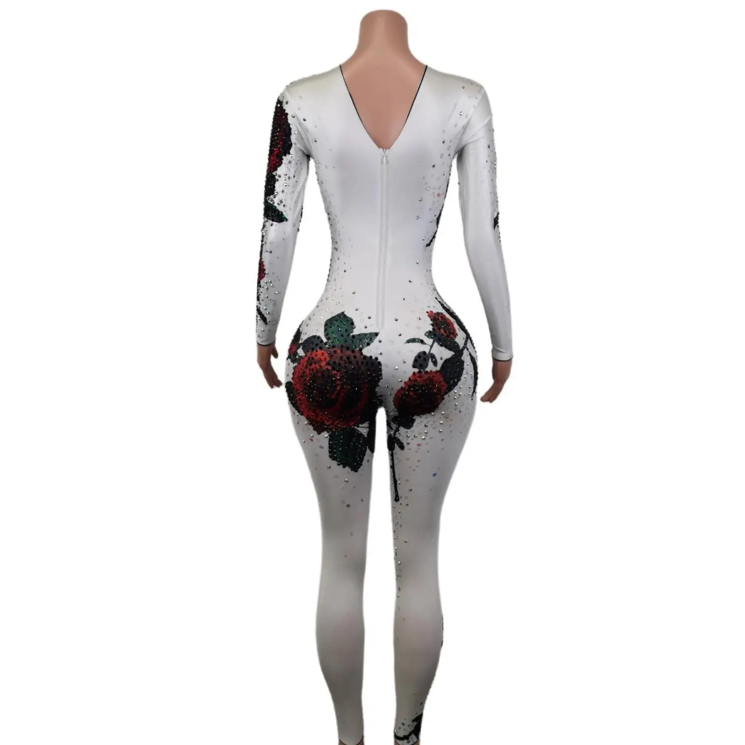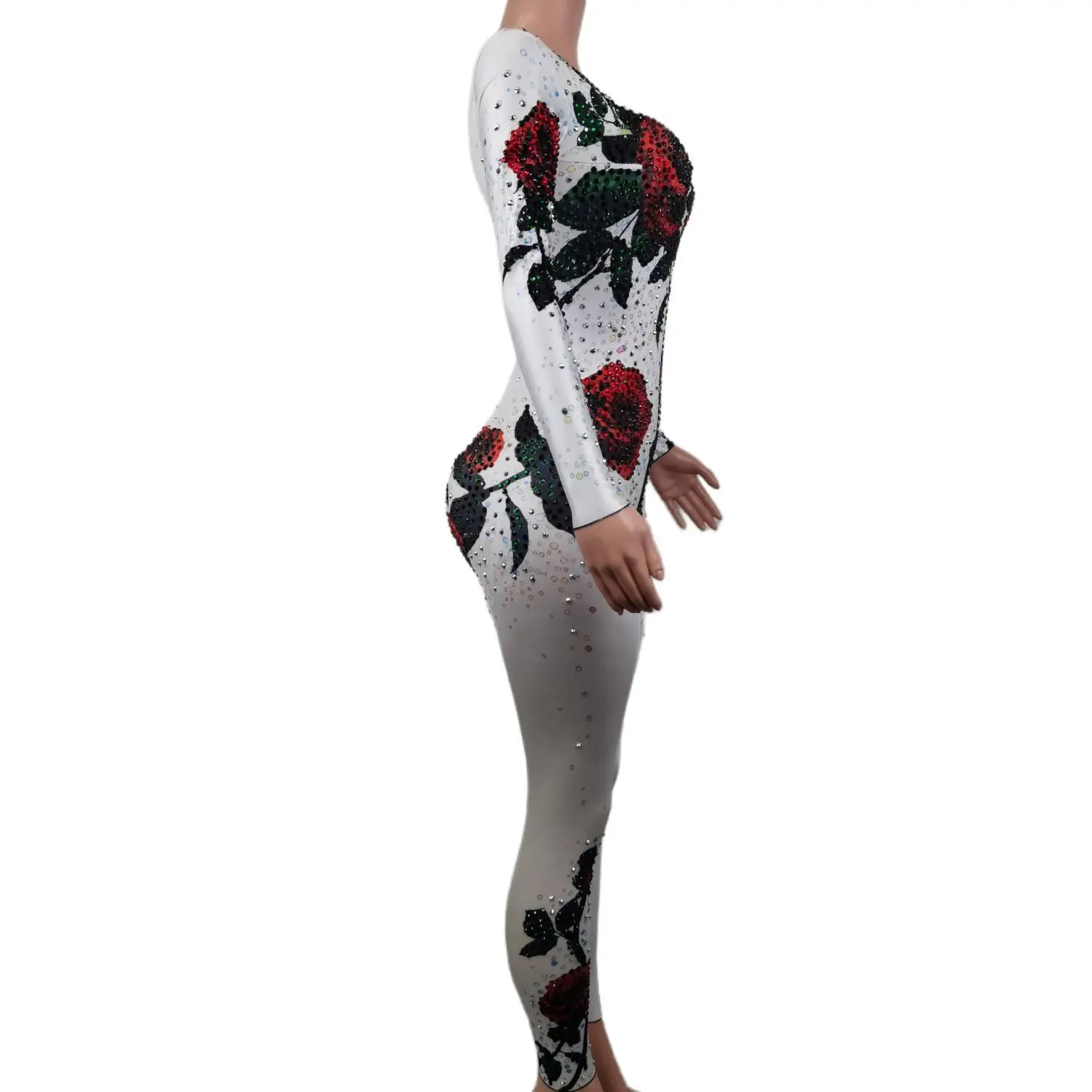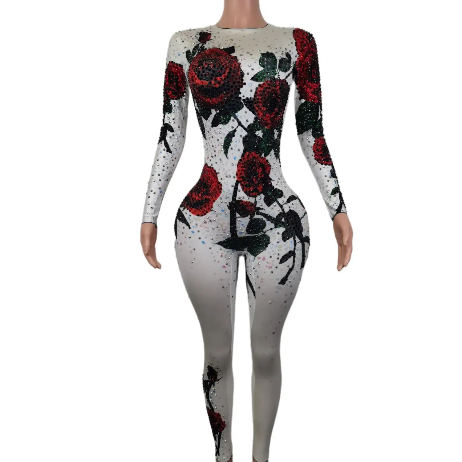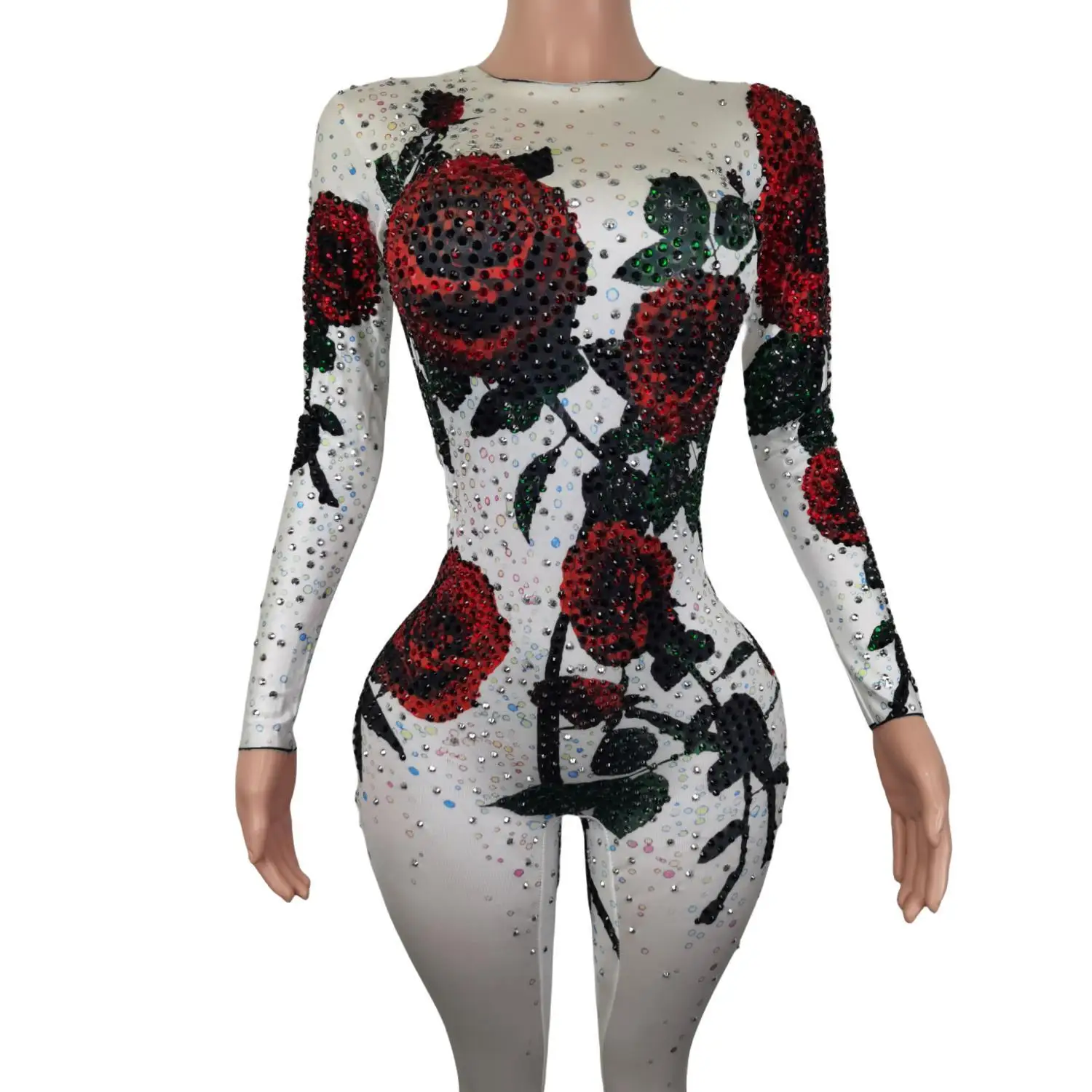 FFoTZuTSHere you can buy Red Rose Pattern Rhinestone Bodycon Jumpsuits Club Party Rompers Bodysuit Nightclub Dancer Showgirl Performance Clothes Meiguiku with free delivery to your post office.