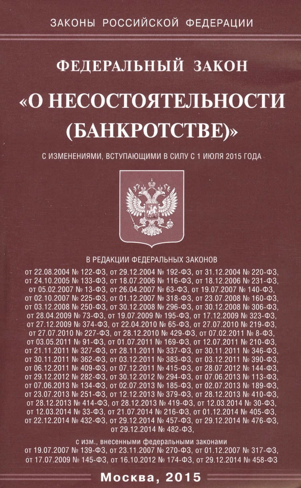 Редакции фз о несостоятельности банкротстве