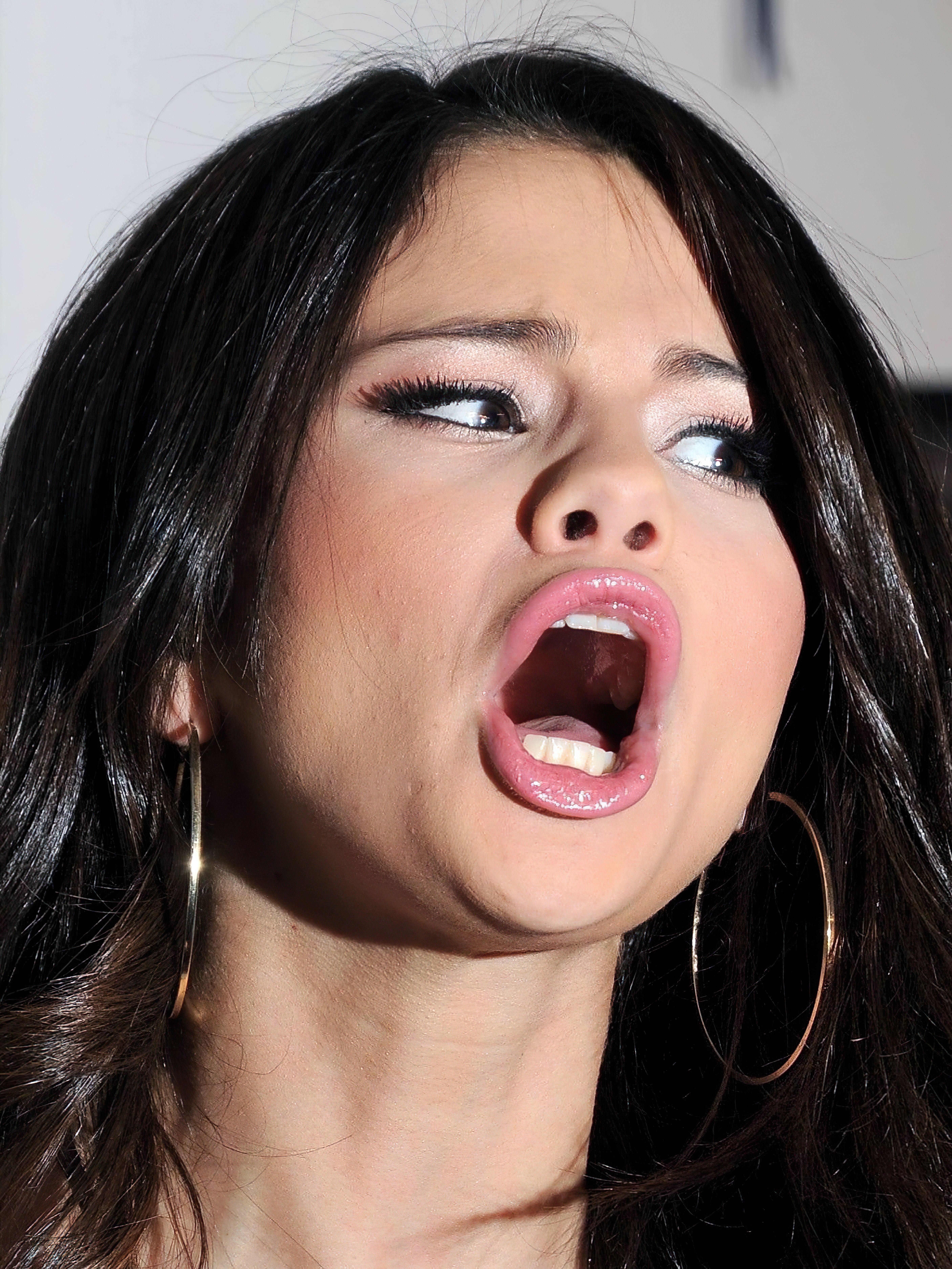 Black haired babe sucking the jizz shot out of a cock