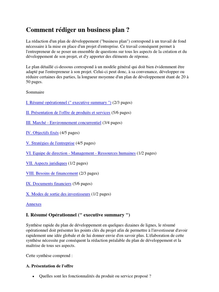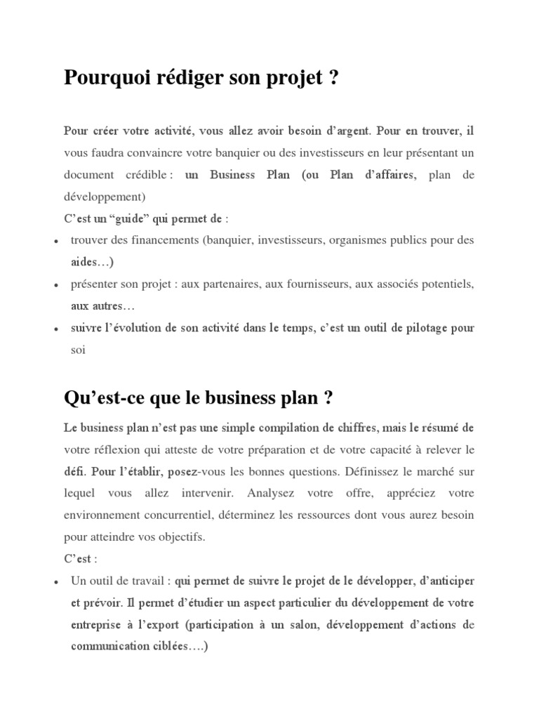 Comment Rediger Un Bon Business Plan Pdf
