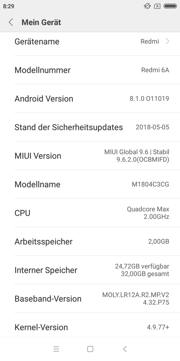 Процессор есть Quad-core 2 .0 GHz Cortex-A53 и памяти 32 GB, 3 RAM 16 GB, 2 GB RAM . Емкость аккумулятора 3000 mAh . Подробности читайте ниже . . Здесь вы найдете все об Xiaomi Redmi 6A . подробные технические характеристики