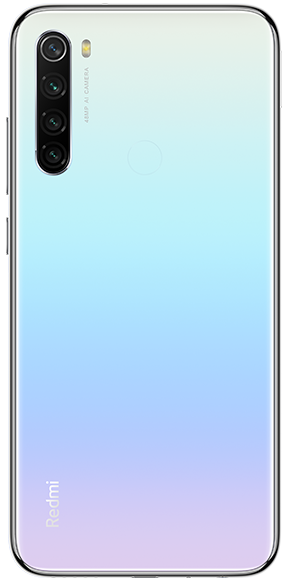 Смартфон Redmi Note 8 изысканно выглядит и приятный на ощупь . На задней панели расположен датчик отпечатка пальца . Идеальное сочетание технологий и эстетики представлено в трех цветах: синий, лунно-белый и космический черный .