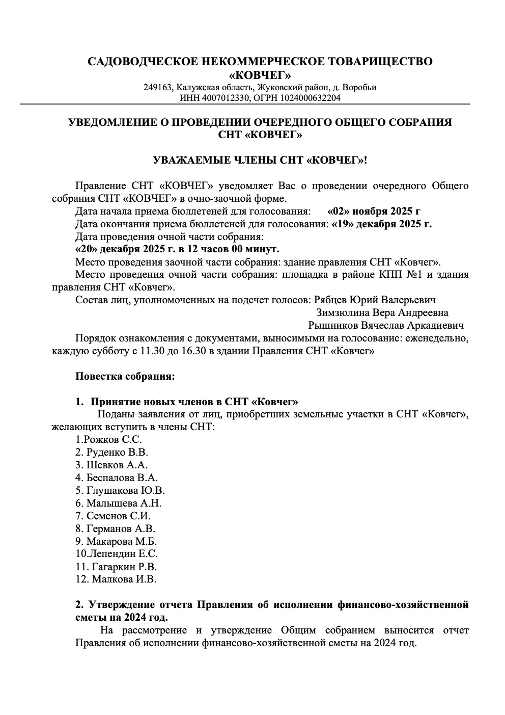Реестр собрания снт