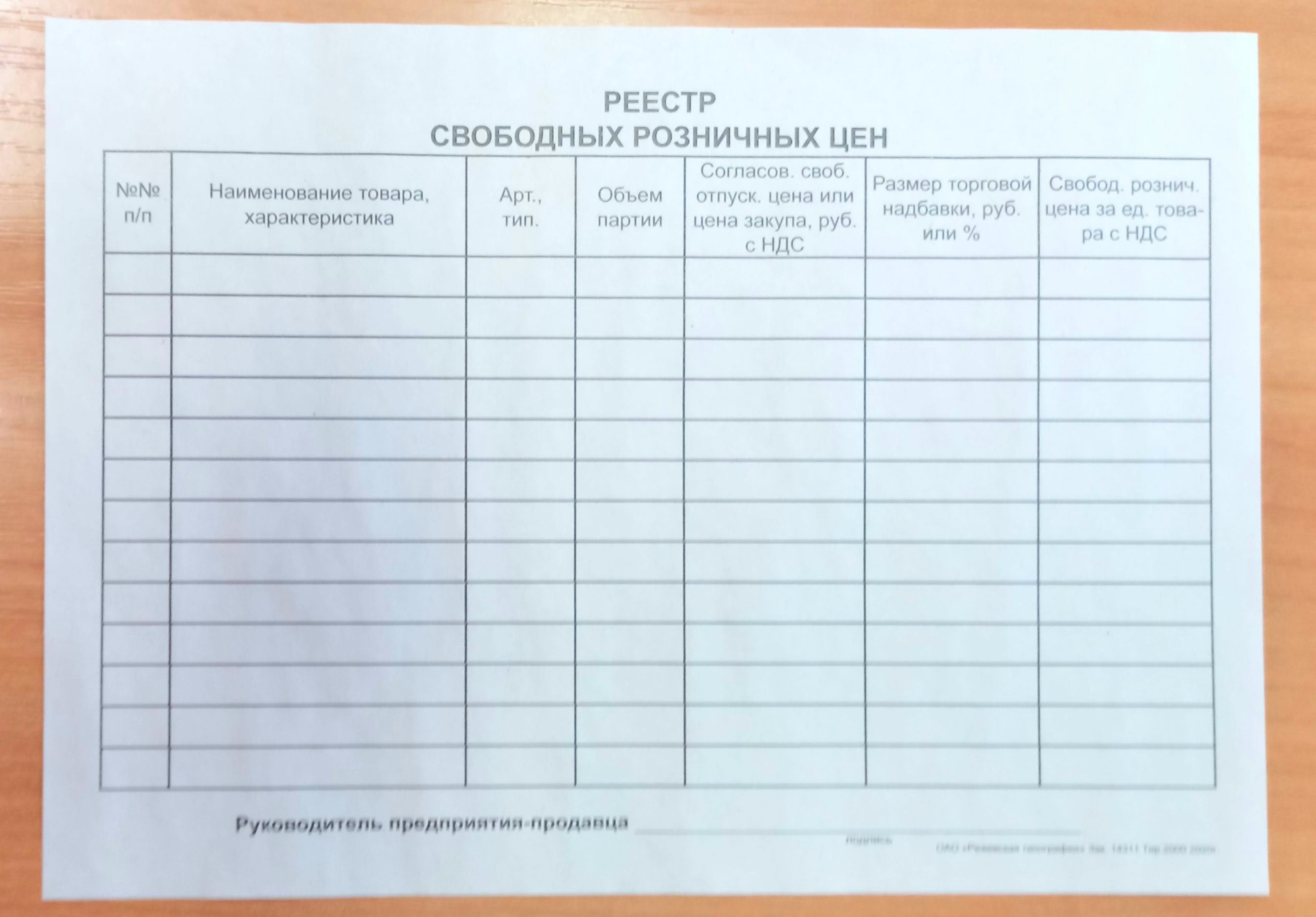 Реестр торговых услуг