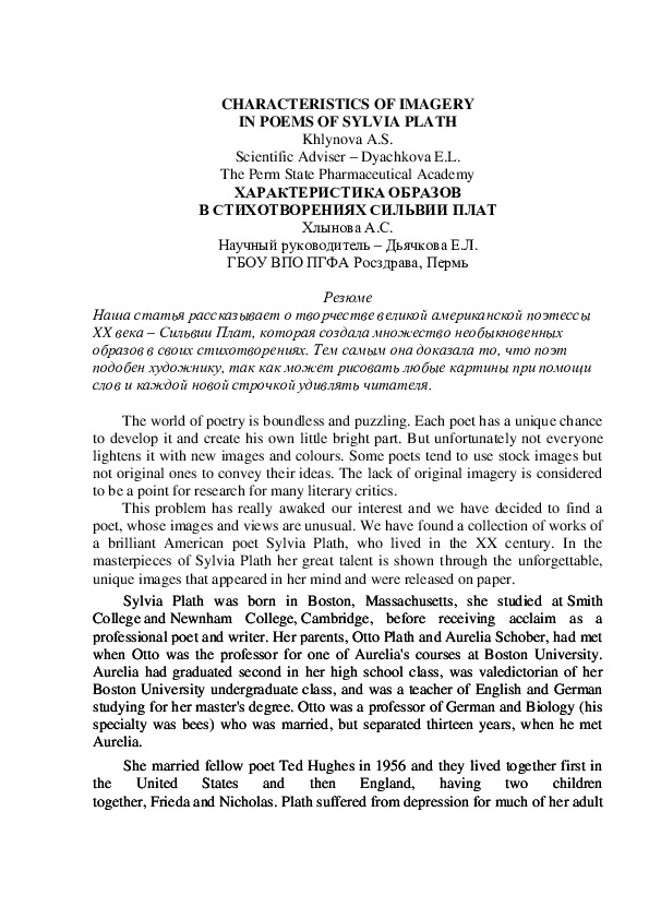 Реферат: Analysis Of Plath