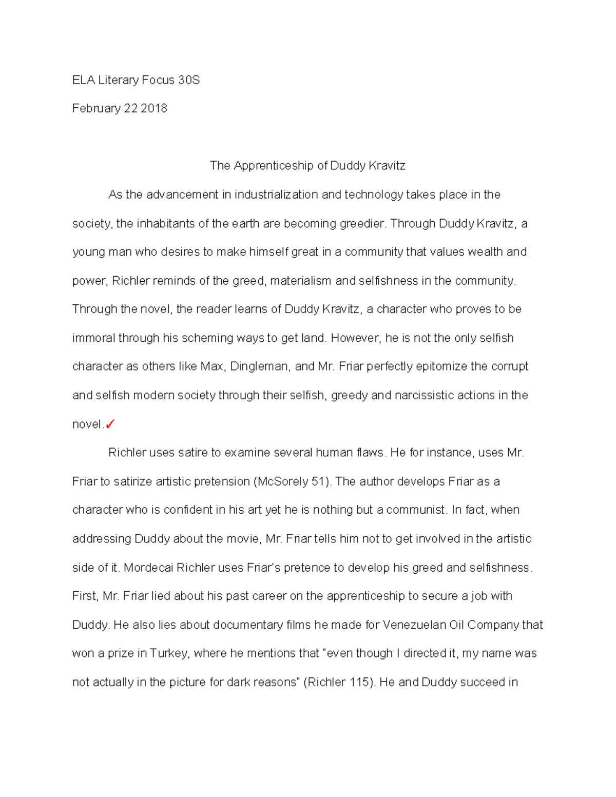 Character Study on Duddy Kravitz Essay - 720 Words | Bartleby