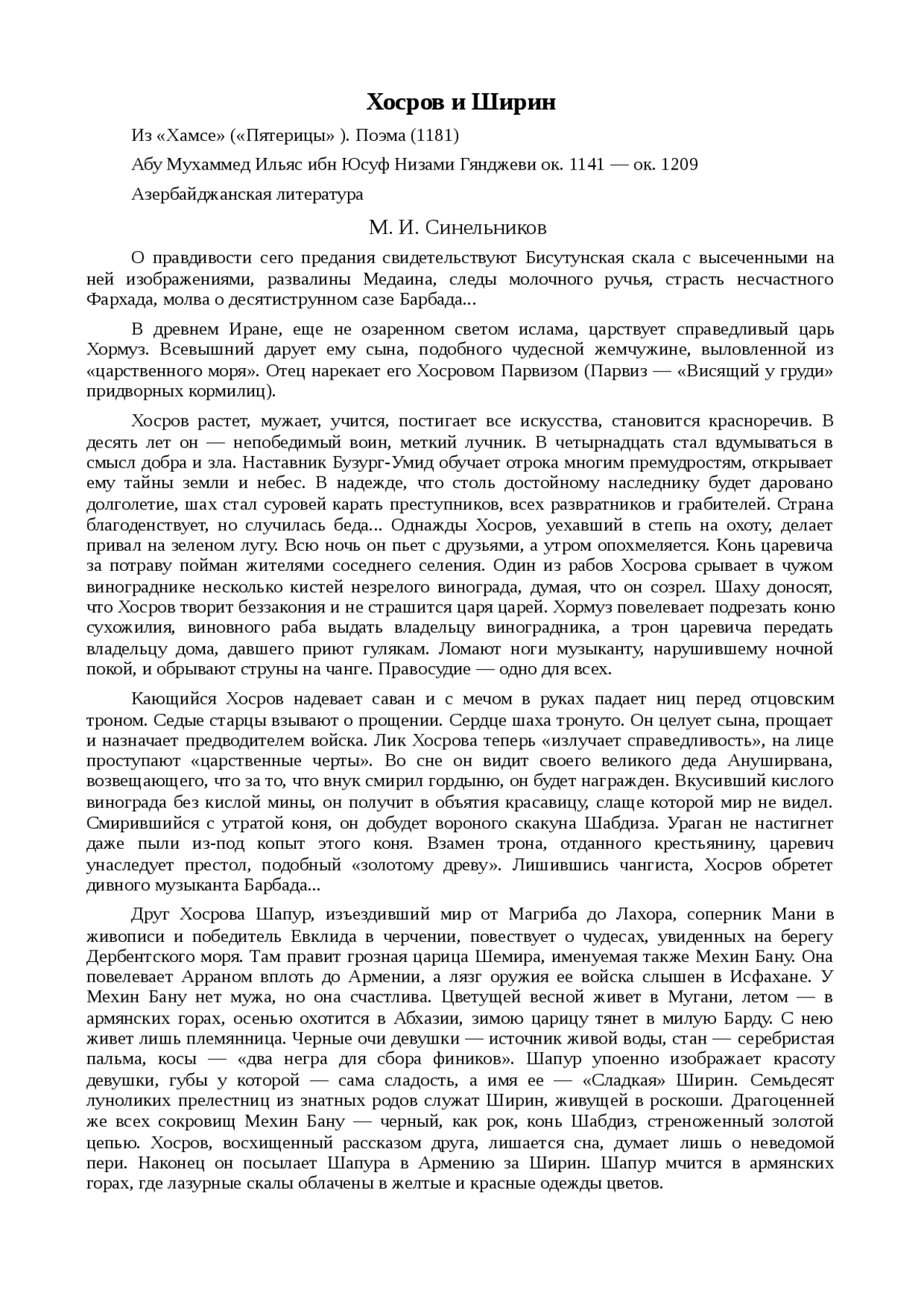 Реферат: Хосров и Ширин - Xreferat .com - Банк рефератов . . .