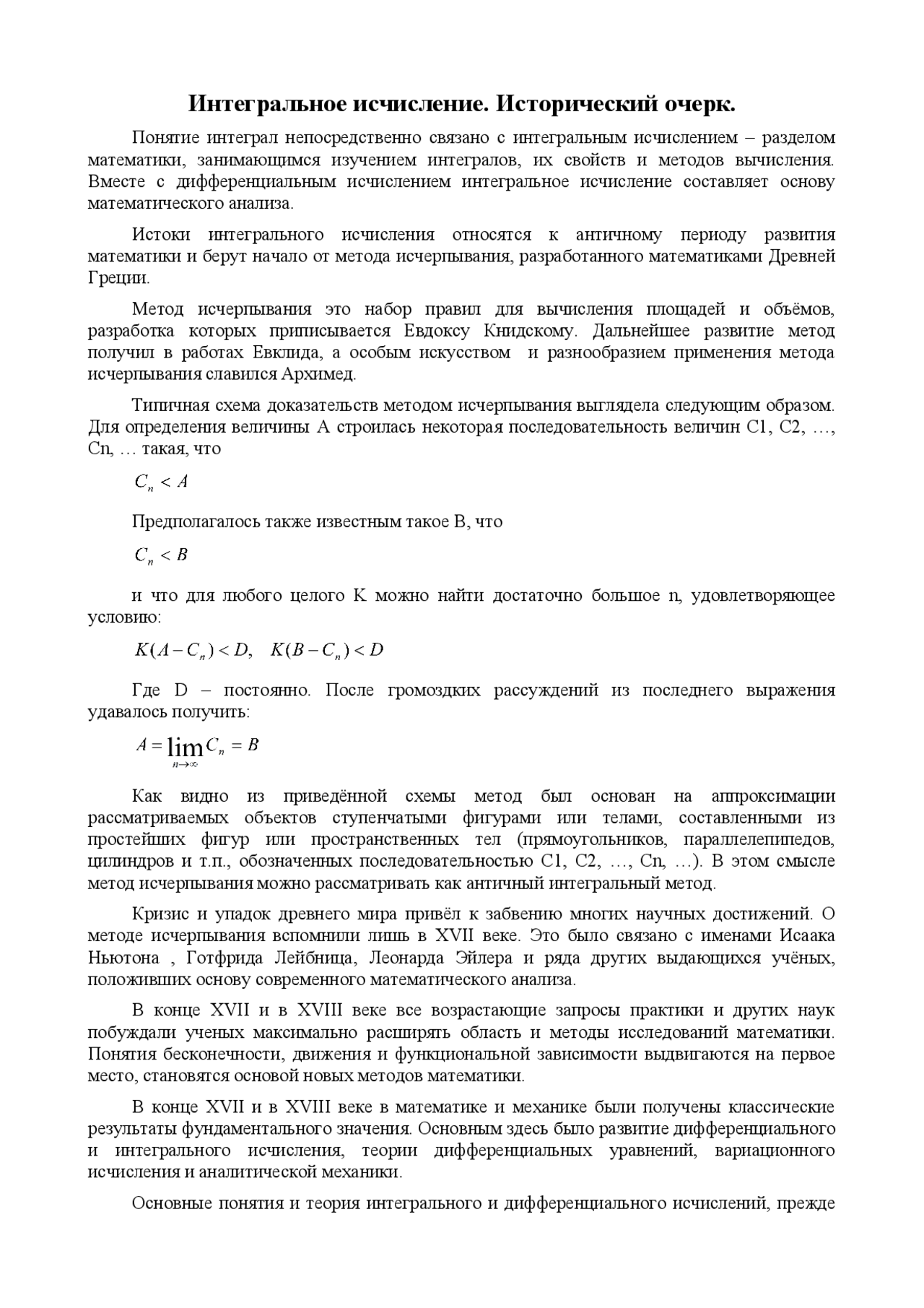 Реферат: Интегральное исчисление. Исторический очерк