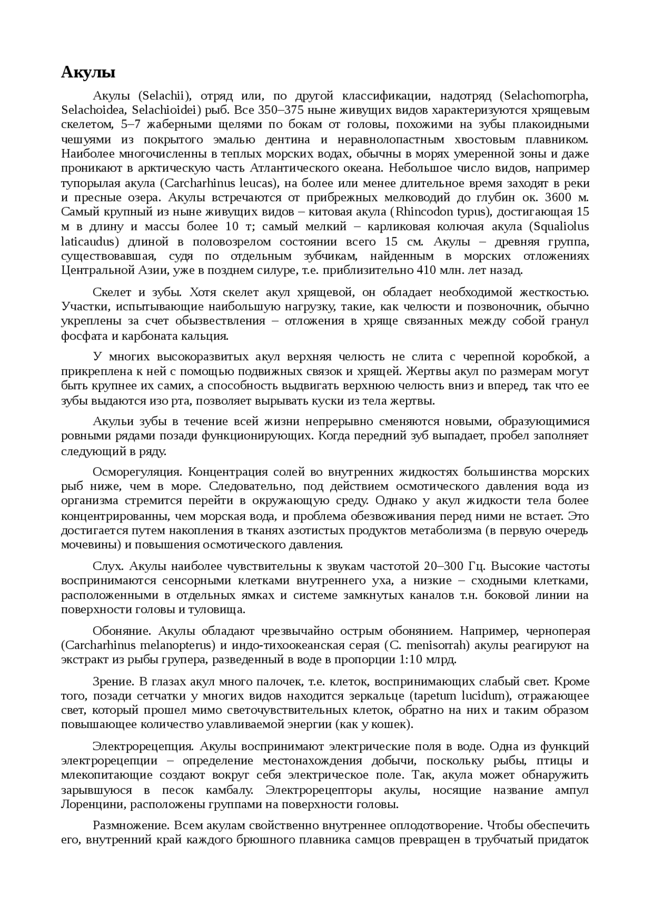 Акулы : Реферат : Биология