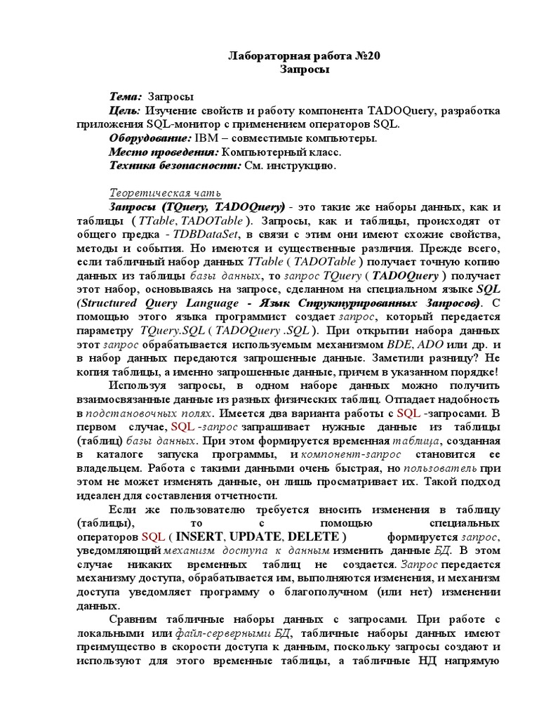 Компоненты для работы с БД: TTable и TQuery (стр . 1 из 4)