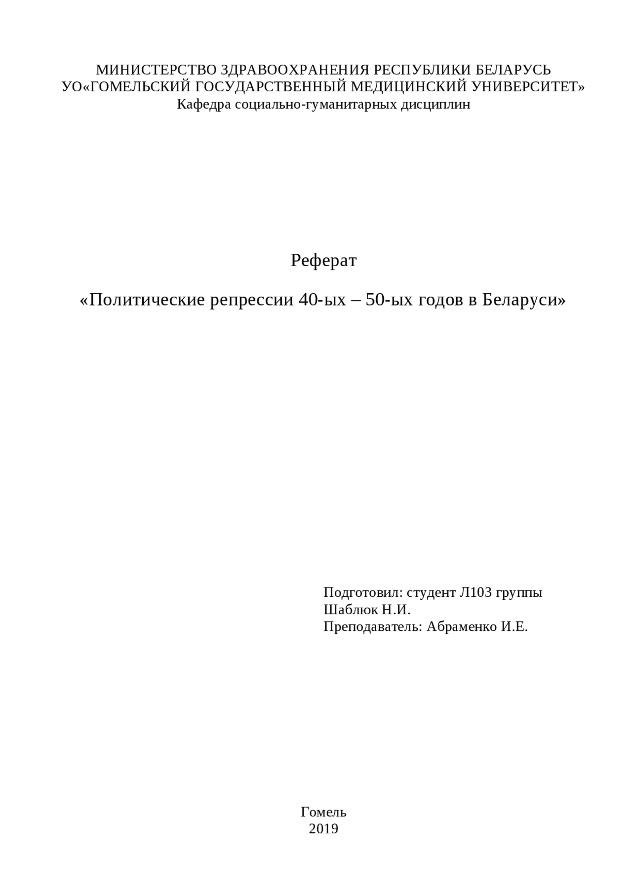 Реферат На тему: «Репрессии 30- 40 годов» Выполнила студентка 1 курса фармацевтического факультета 176 группы Ю .А .Андреева Научный руководитель Столяров О .Д . Самара, 2017 Оглавление Введение