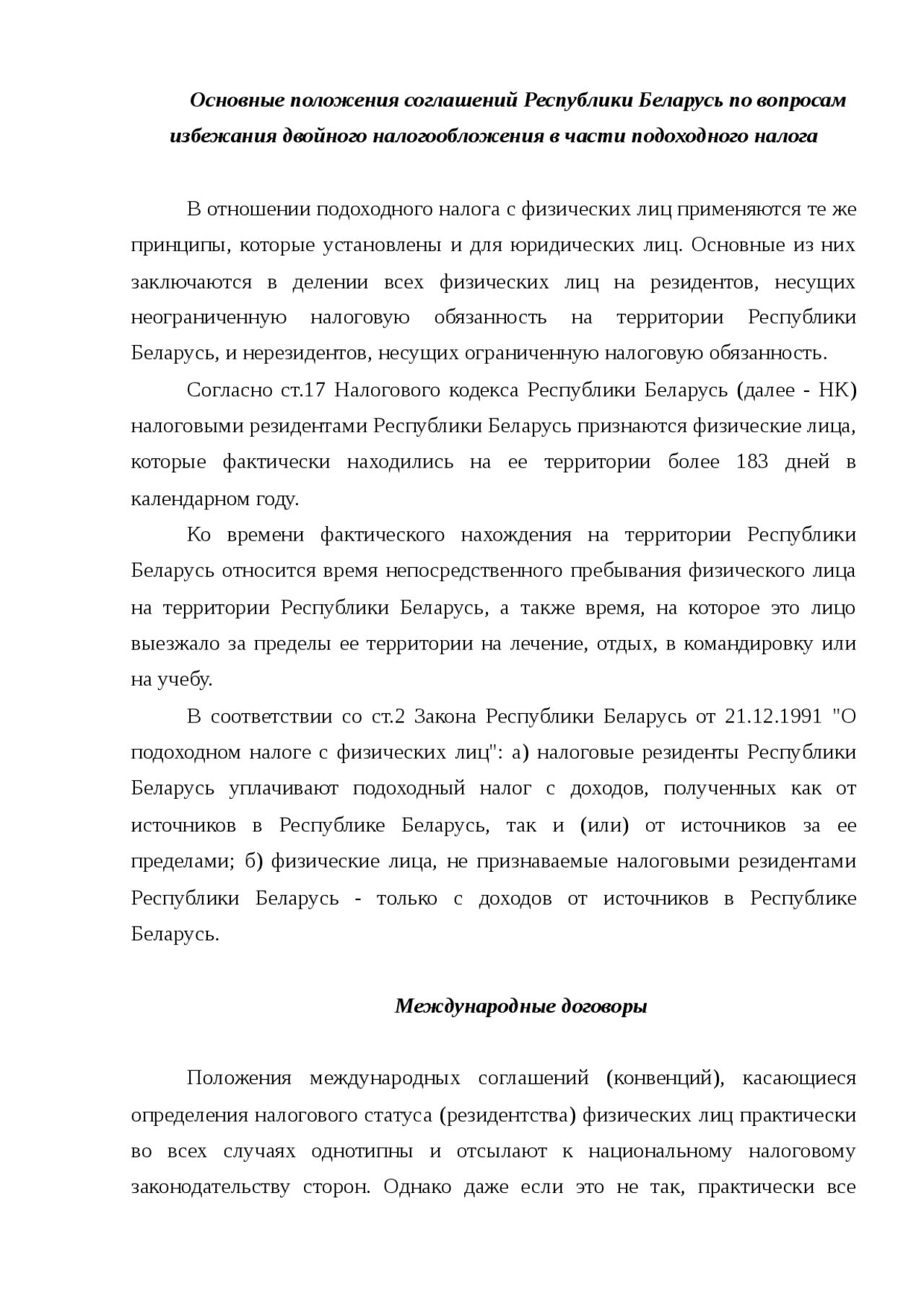 Международные договоры по вопросам налогообложения как . . .