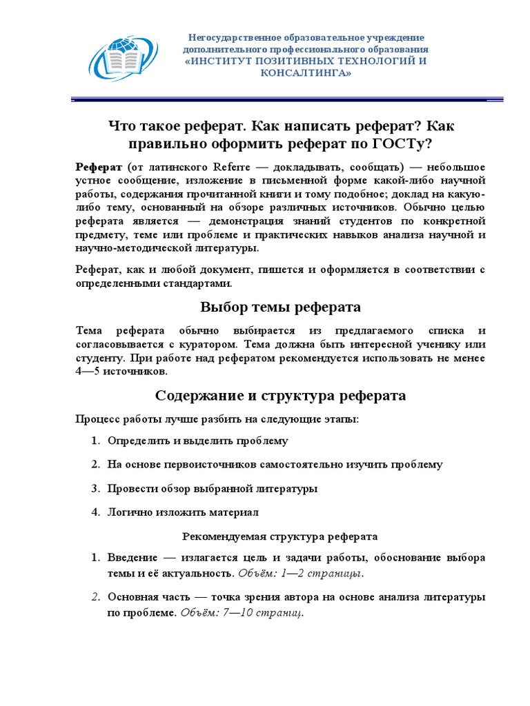 Как писать реферат: образец и примеры
