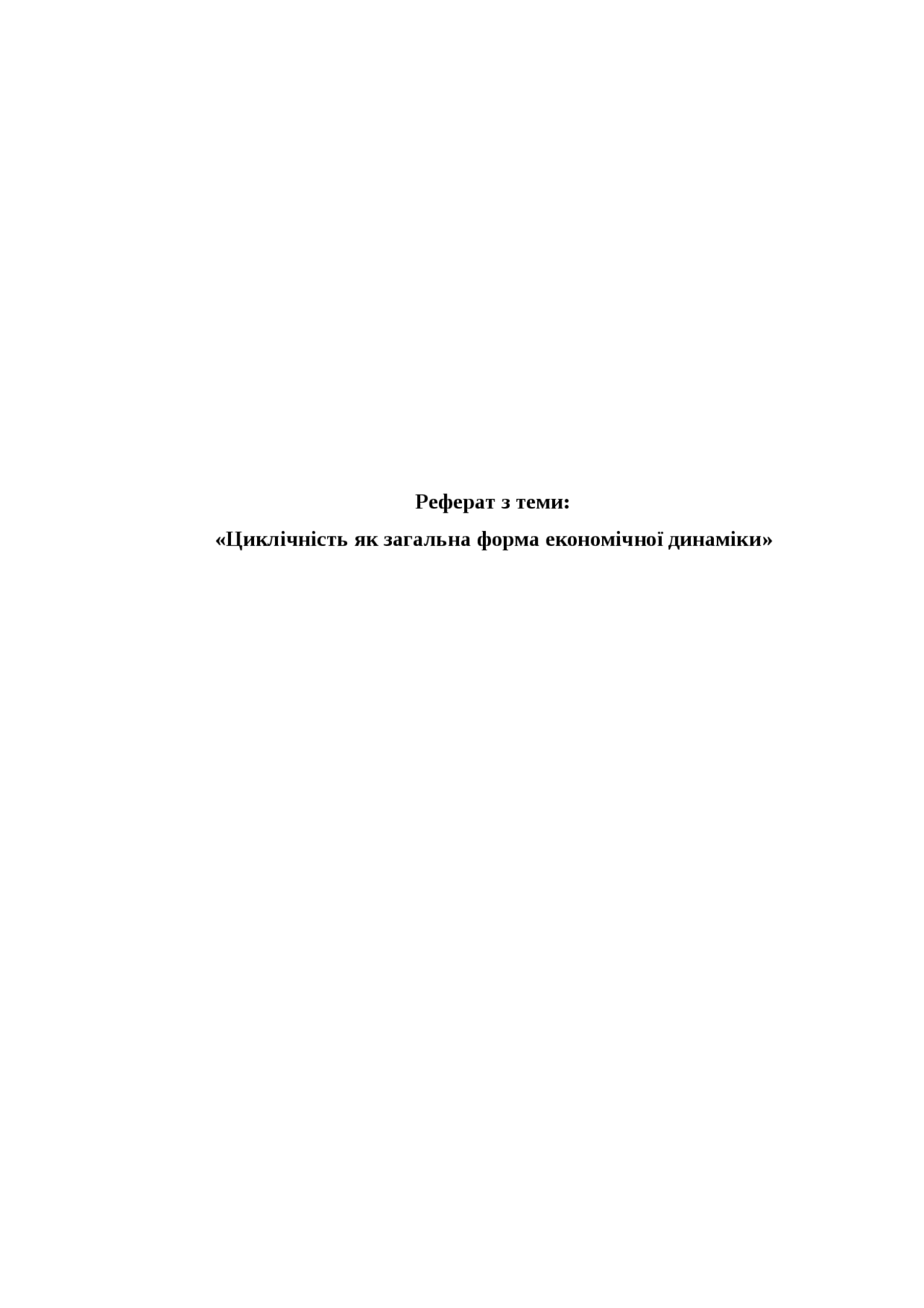 Реферат з теми: «Циклічність як загальна форма економічної динаміки» План . Вступ . 1 . Прогнозування з урахуванням циклічності економічного зростання . 2 .