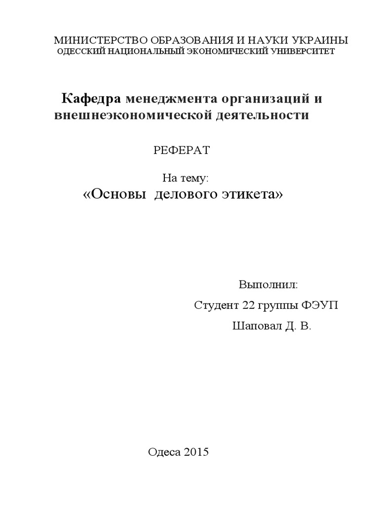 Реферат на тему: Деловой этикет