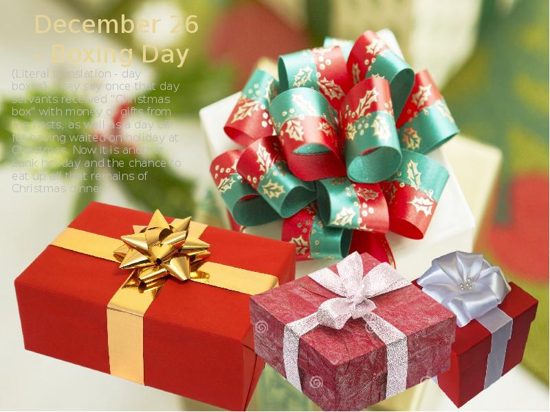 The 26 of December, Boxing Day are an extra holiday after Xmas . This is the time to meet friends or sit at home and watch TV . New years day is less popular in …