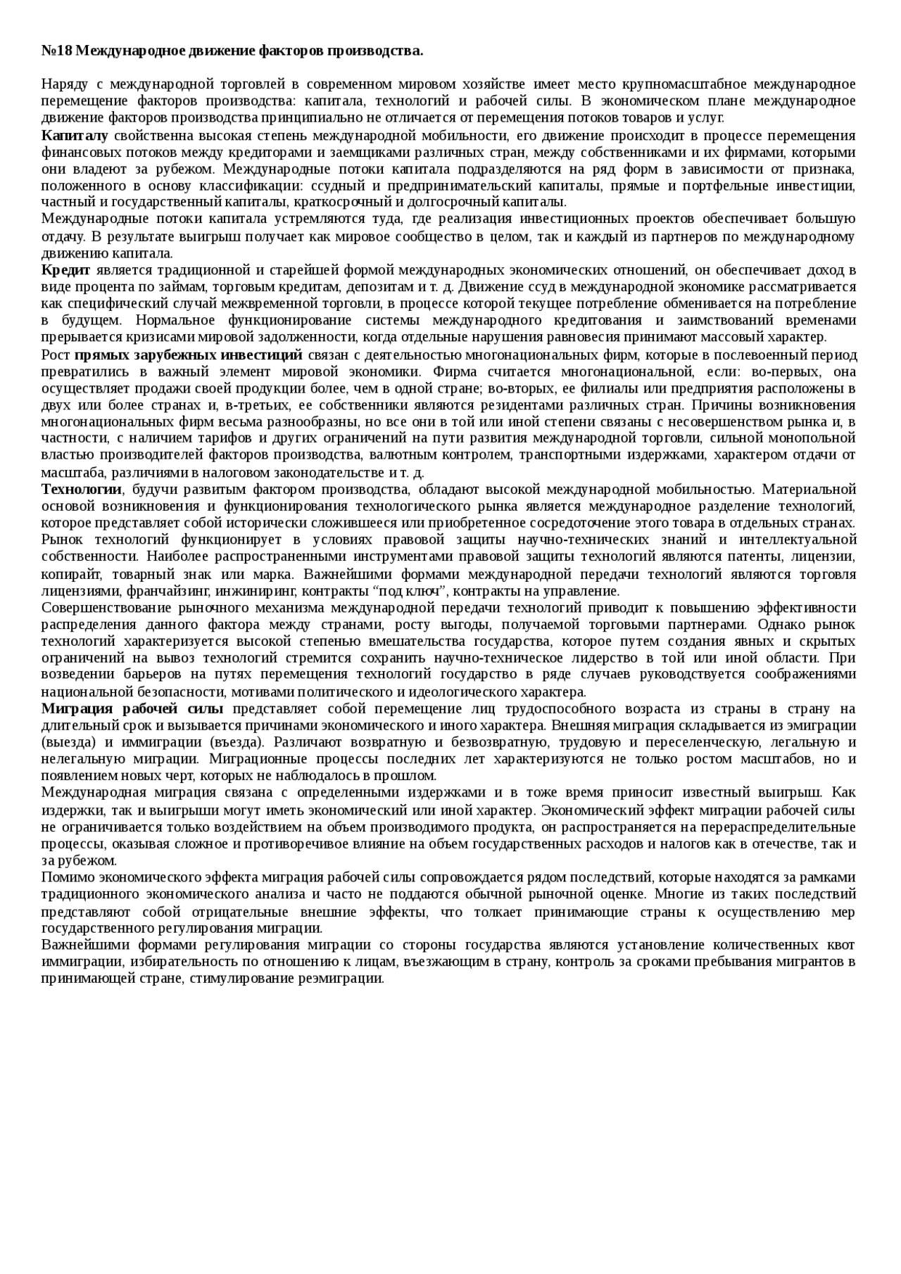 Международное движение факторов производства (2) - Реферат . . .
